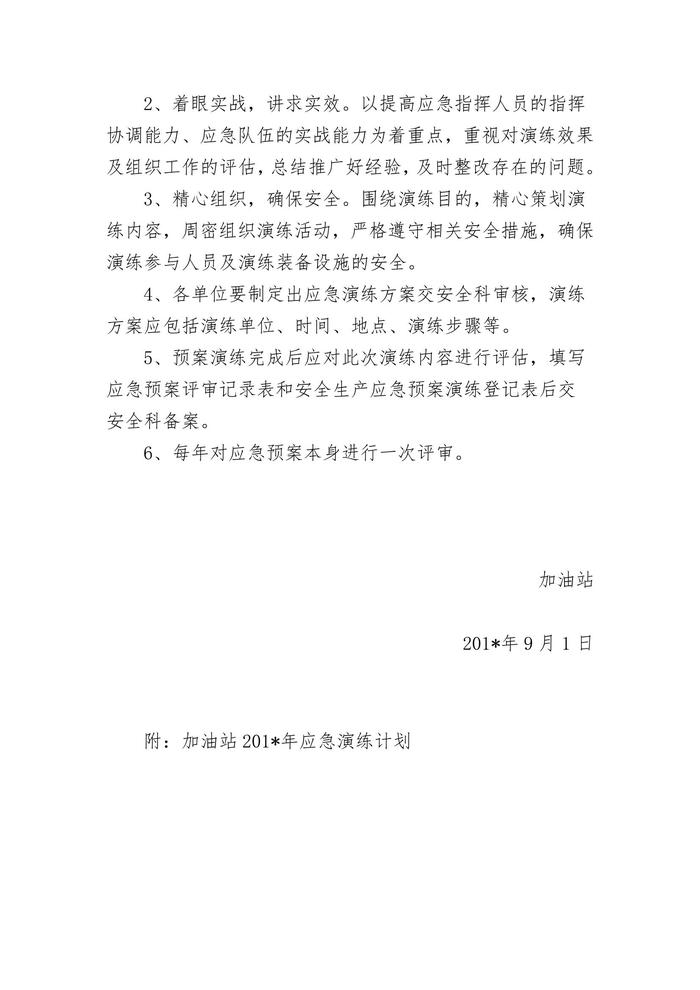 2022年加油站应急预案演练计划方案doc