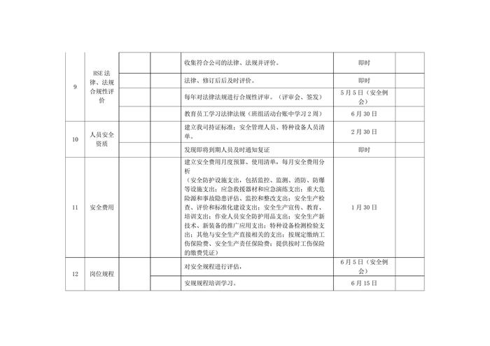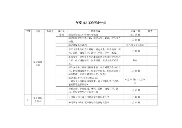 2022年度公司HSE工作五定计划docx