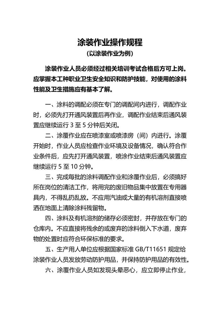 岗位职业卫生操作规程 (以涂装作业为例)docx