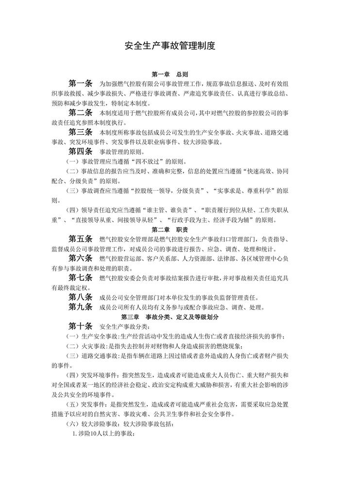 燃气公司安全生产事故管理制度doc