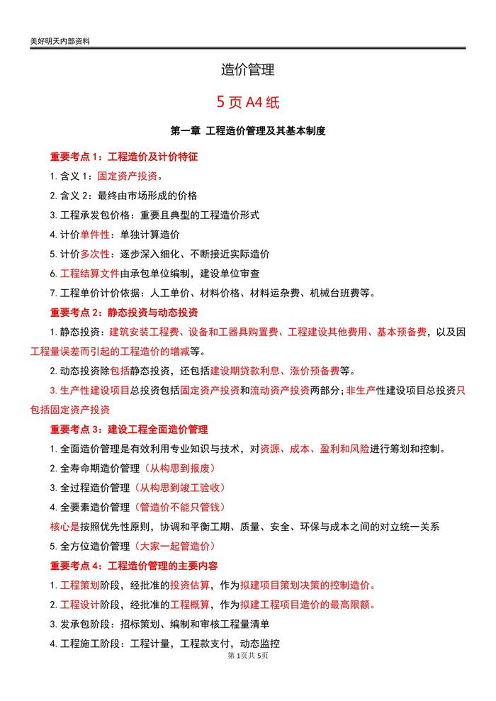 下一条:一级建造工程师《造价管理》十页纸