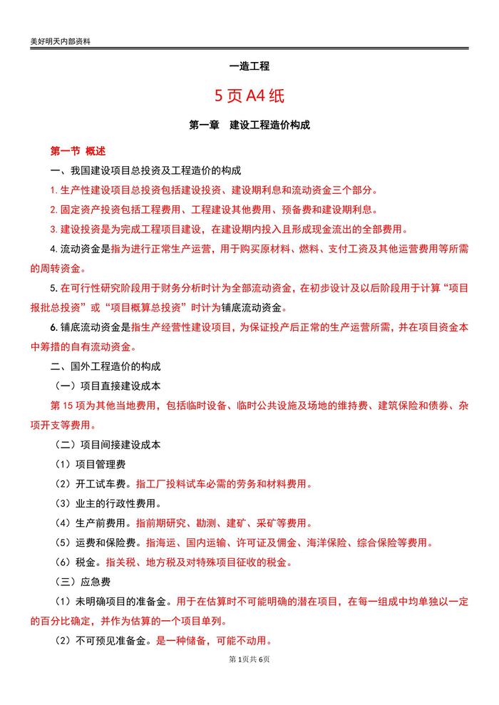 一建内部资料建设工程造价构成