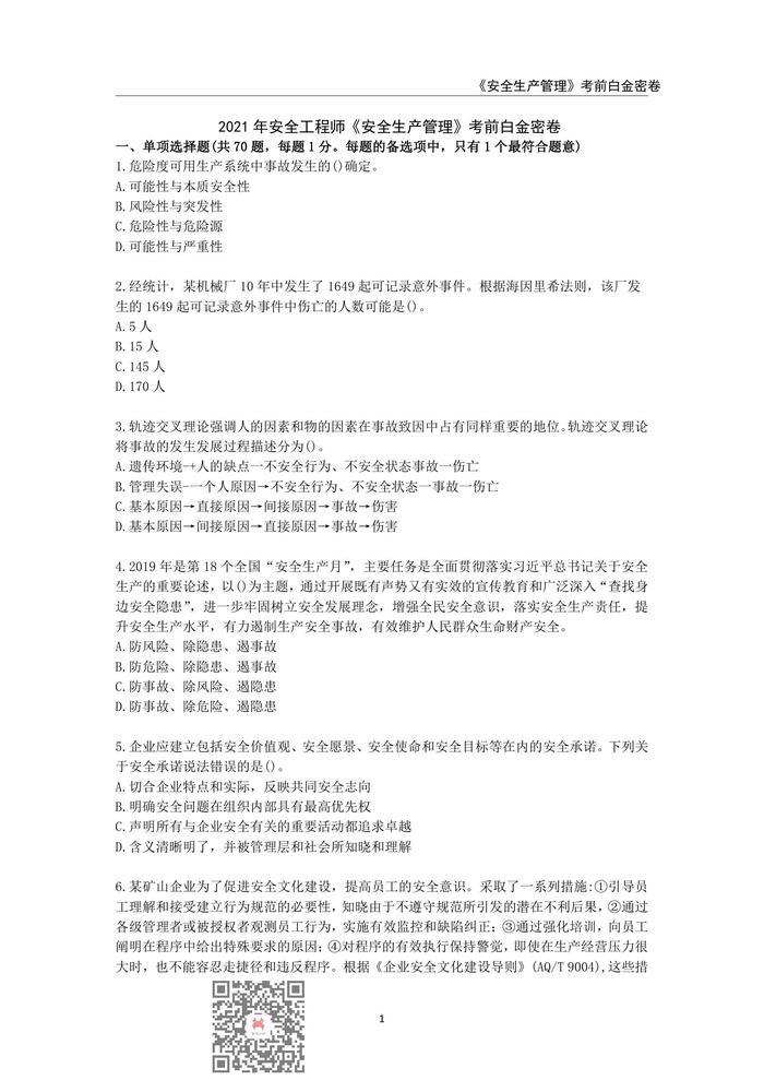 注册安全工程师《安
