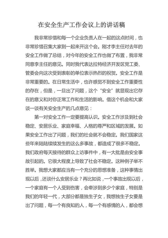 在安全生产工作会议