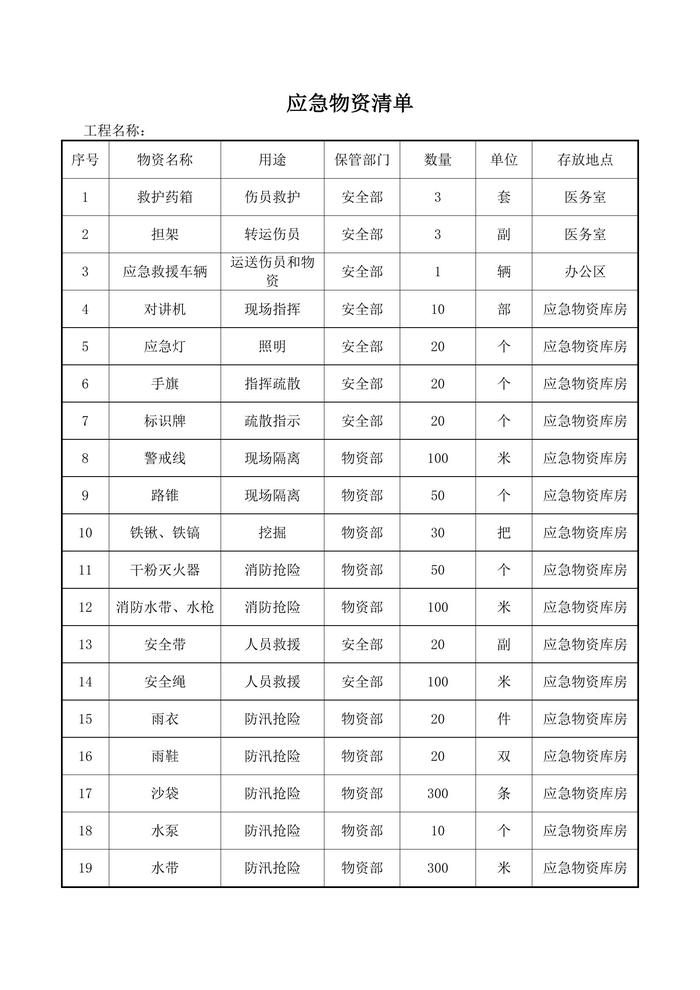 应急物资清单