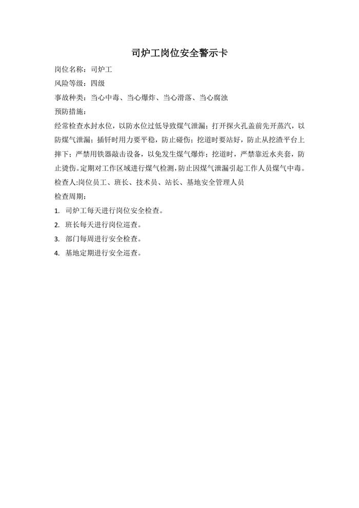 司炉工岗位安全警示