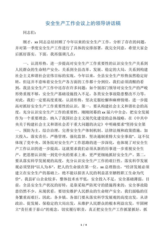 安全生产工作会议上