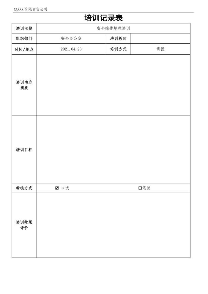 公司安全培训记录表(1)doc
