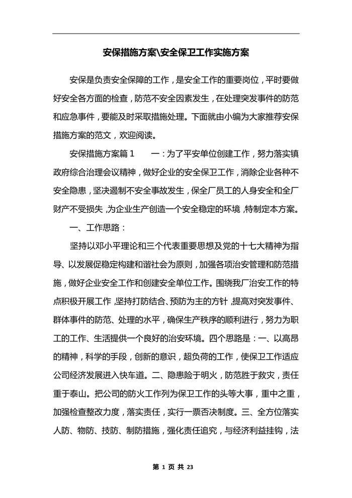 安保措施方案安全保卫工作实施方