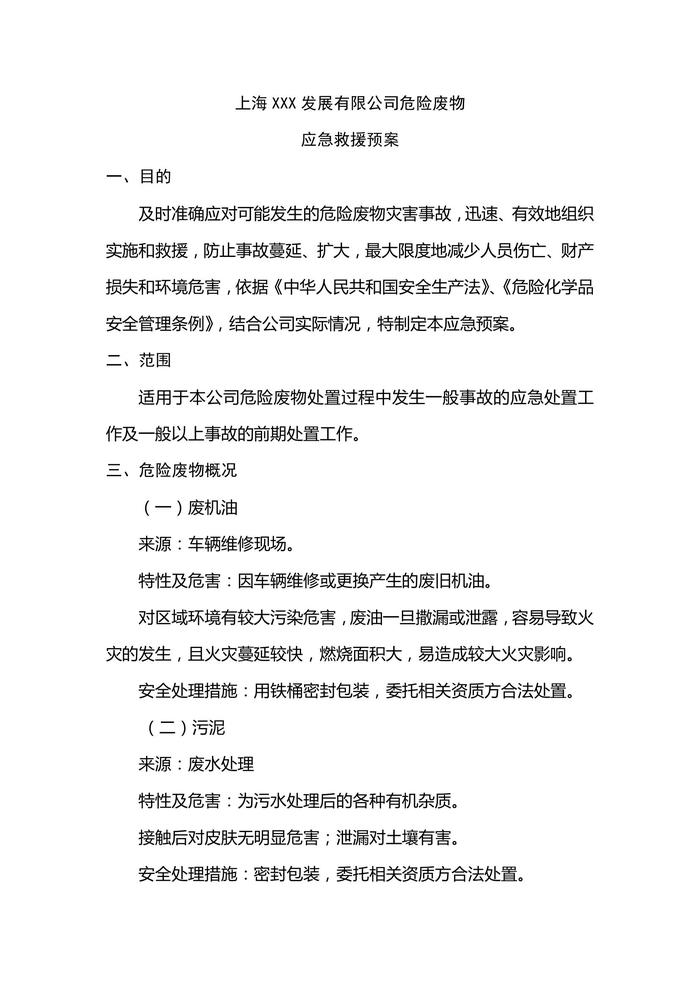 公司危险废物应急救援预案