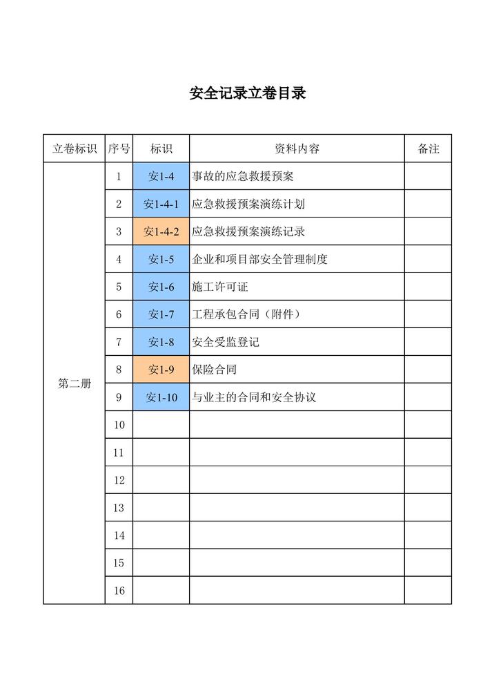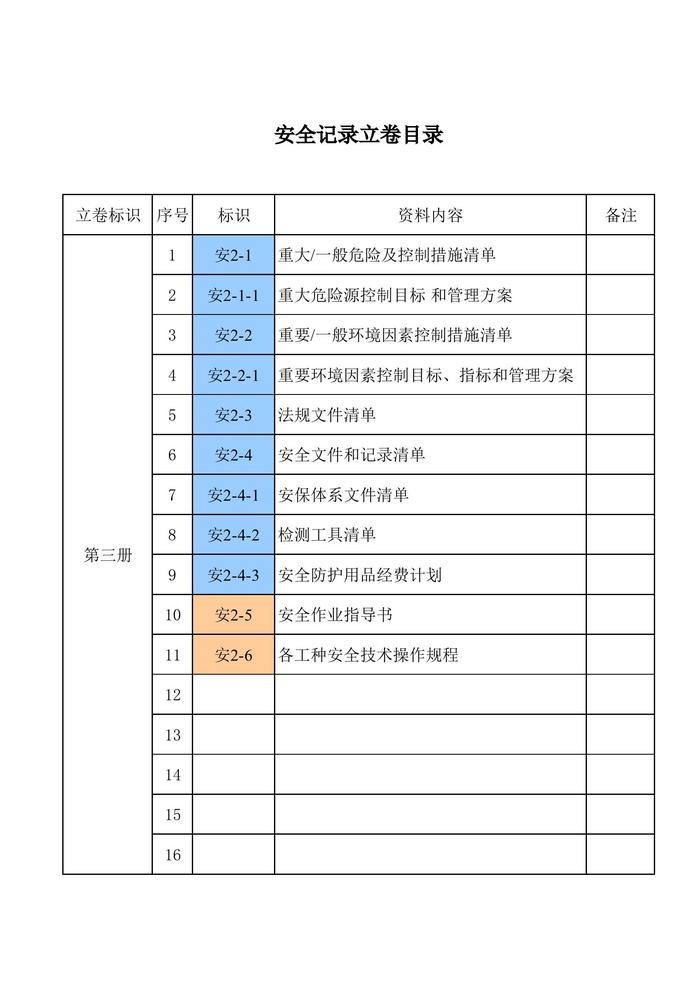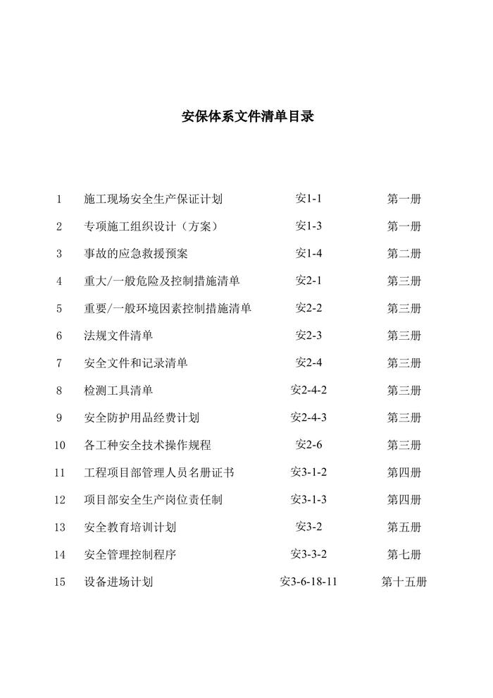 安保体系文件清单