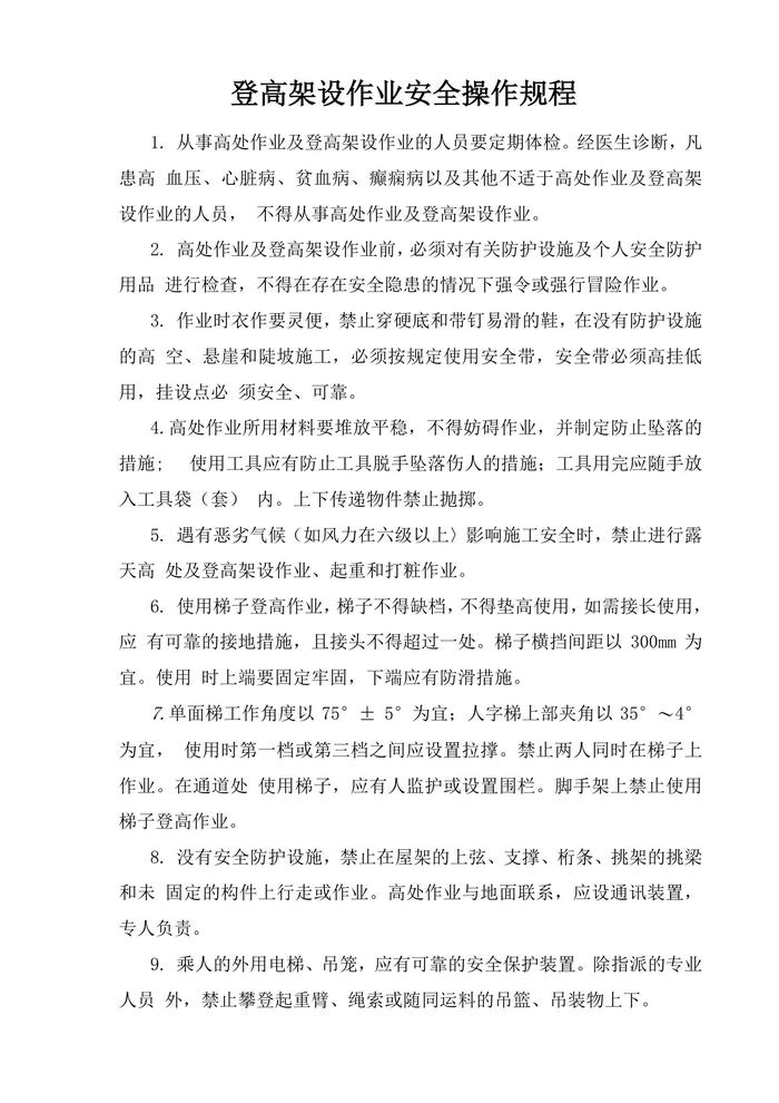 登高架设作业安全操作规程doc