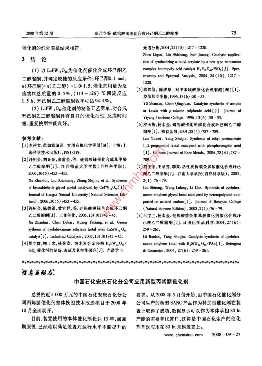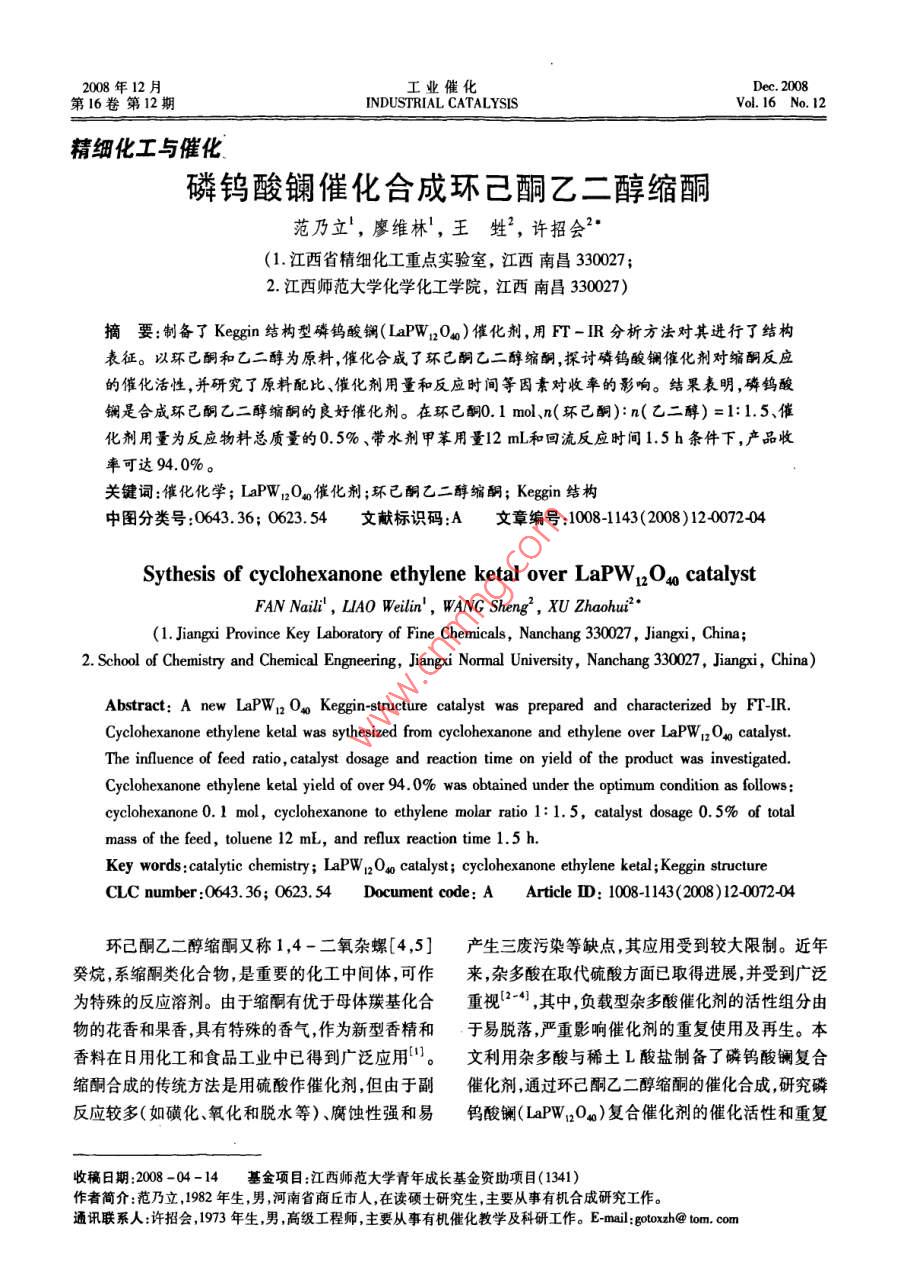 磷钨酸镧催化合成环己酮乙二醇缩酮