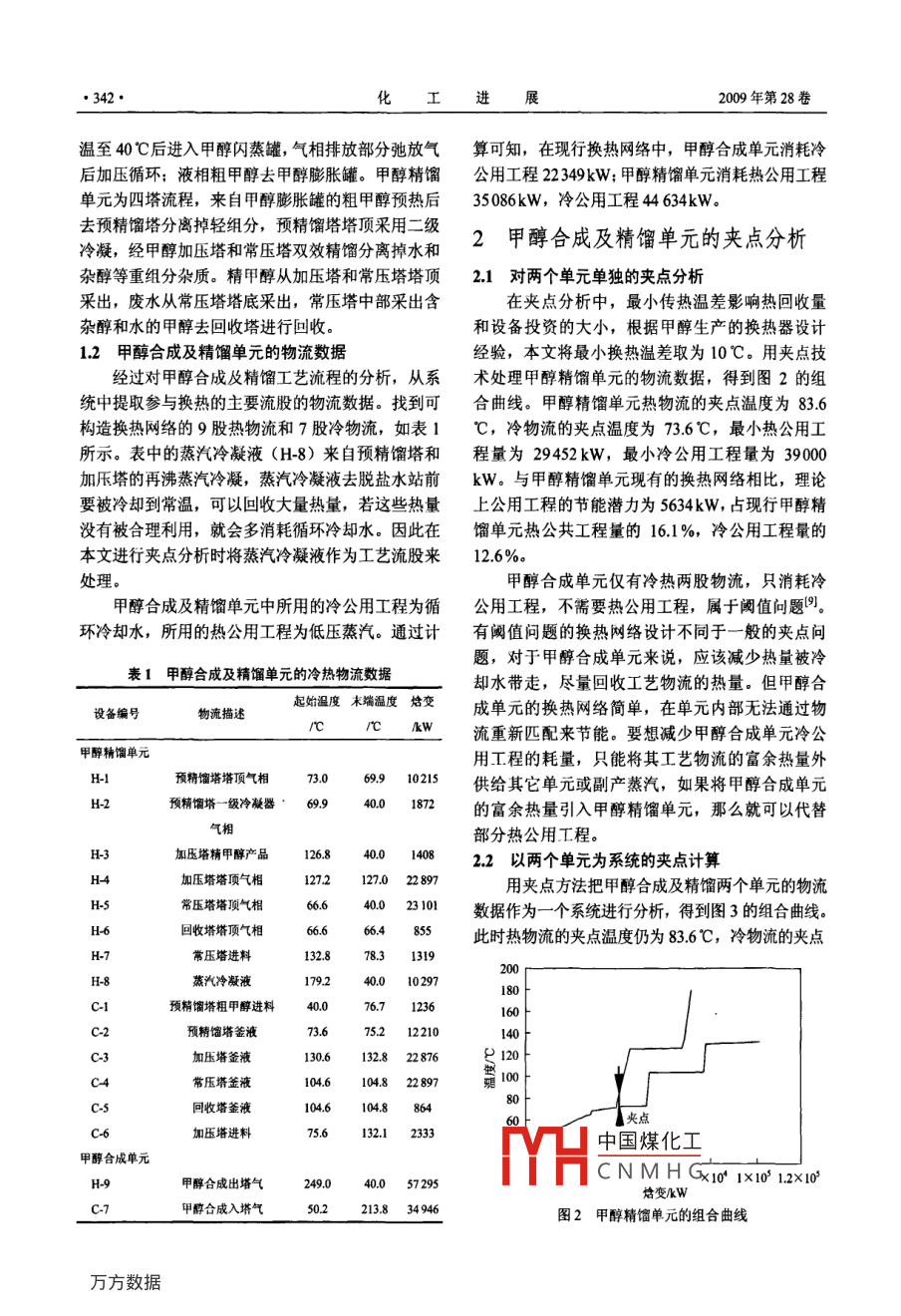 甲醇合成及精馏单元的热集成