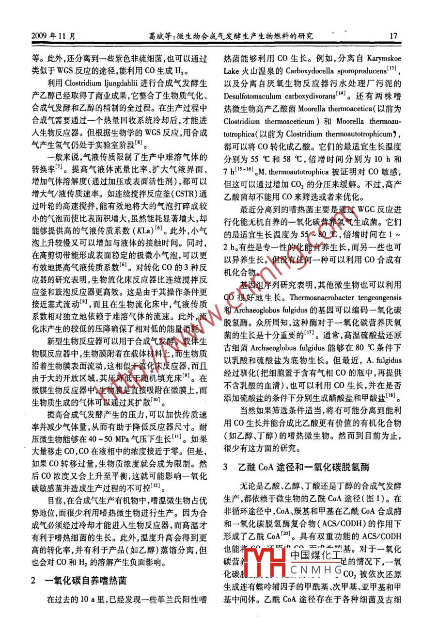 微生物合成气发酵生产生物燃料的研究