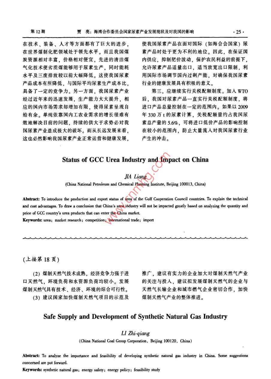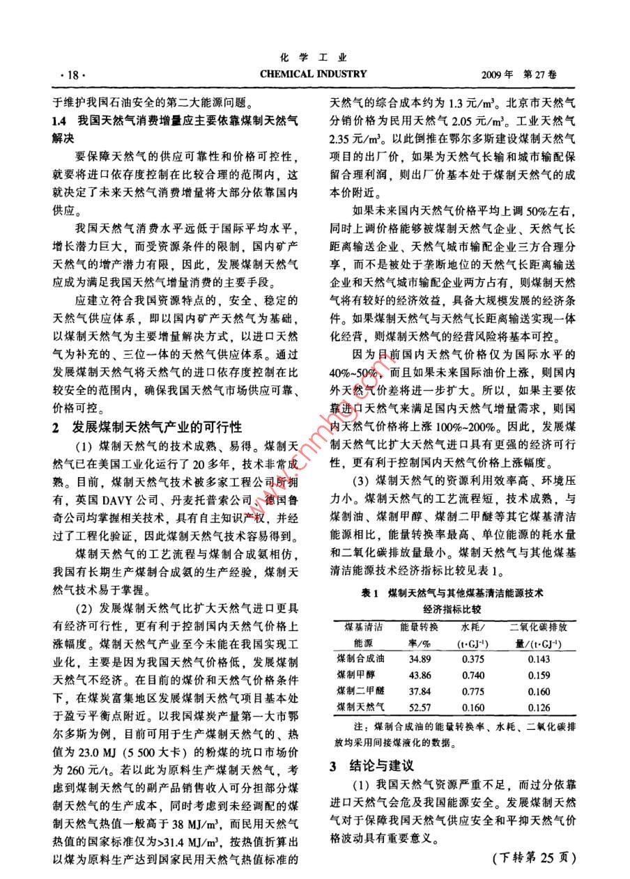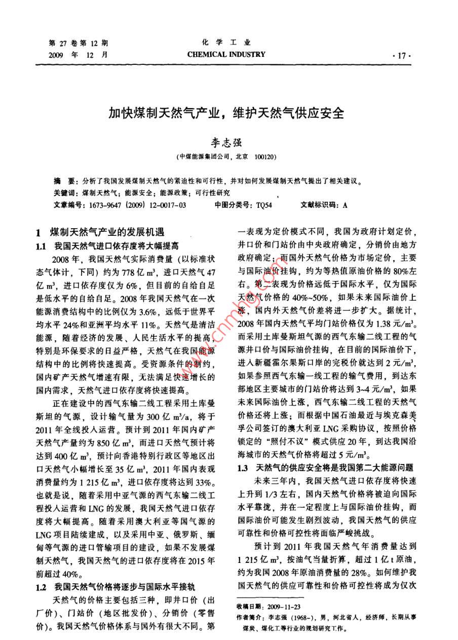 加快煤制天然气产业,维护天然气供应安全