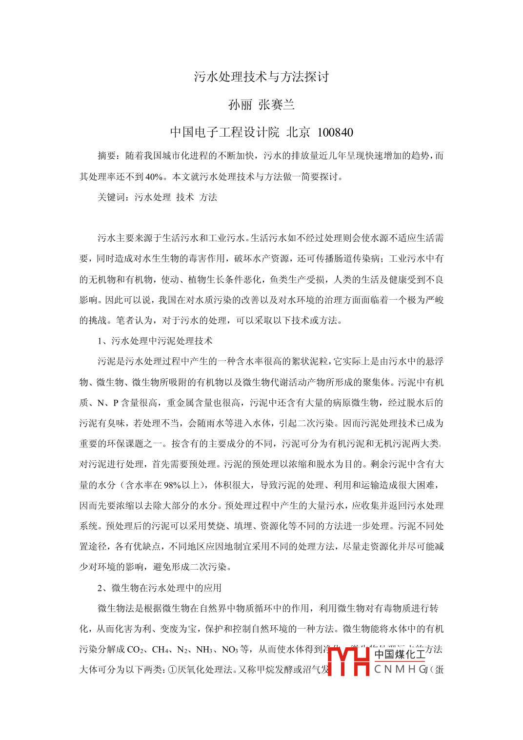 污水处理技术与方法探讨