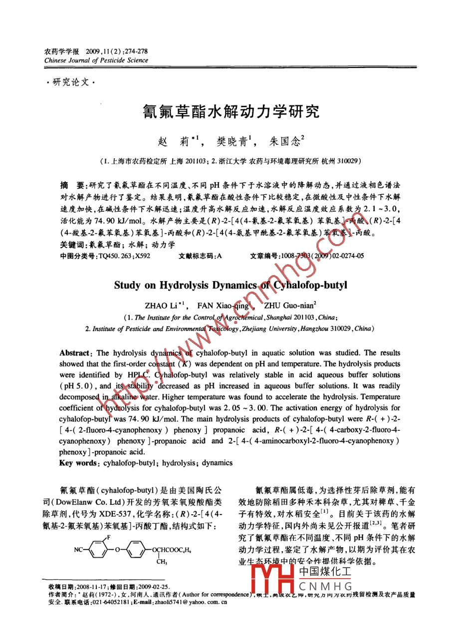 - 作者单位:上海市农药检定所,浙江大学