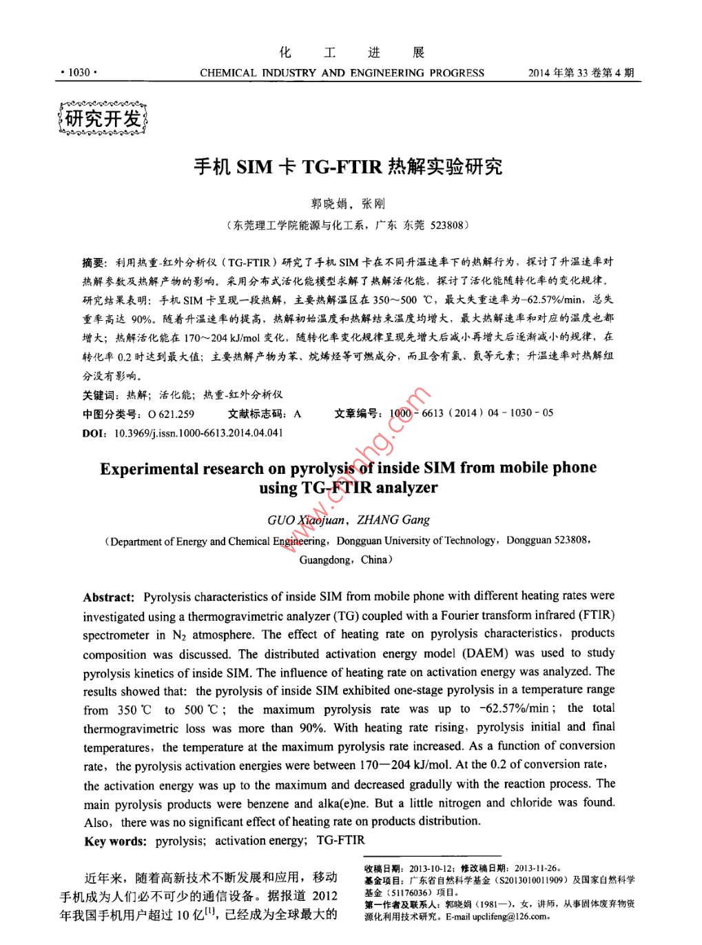 - 作者单位:东莞理工学院能源与化工系