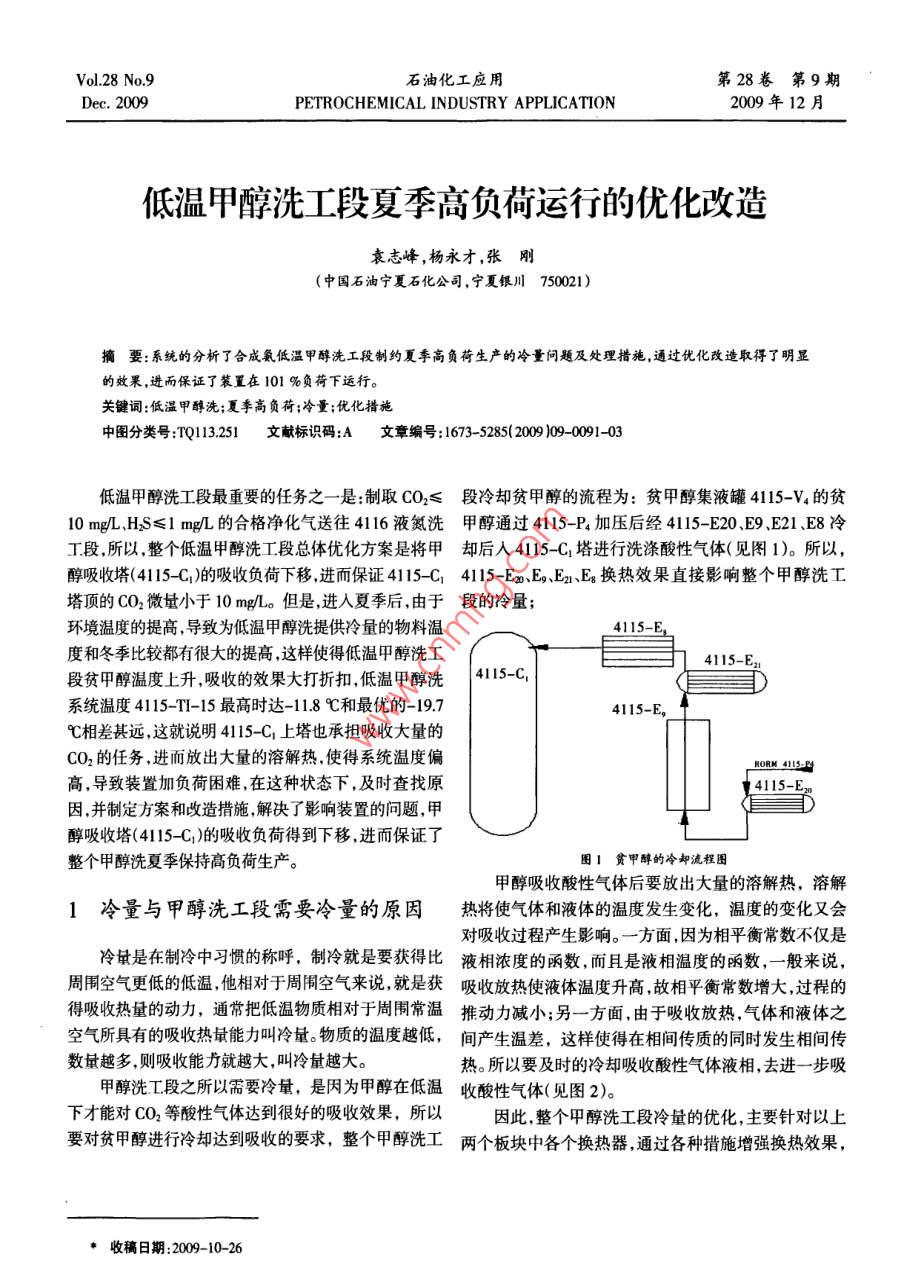 低温甲醇洗工段夏季高负荷运行的优化改造
