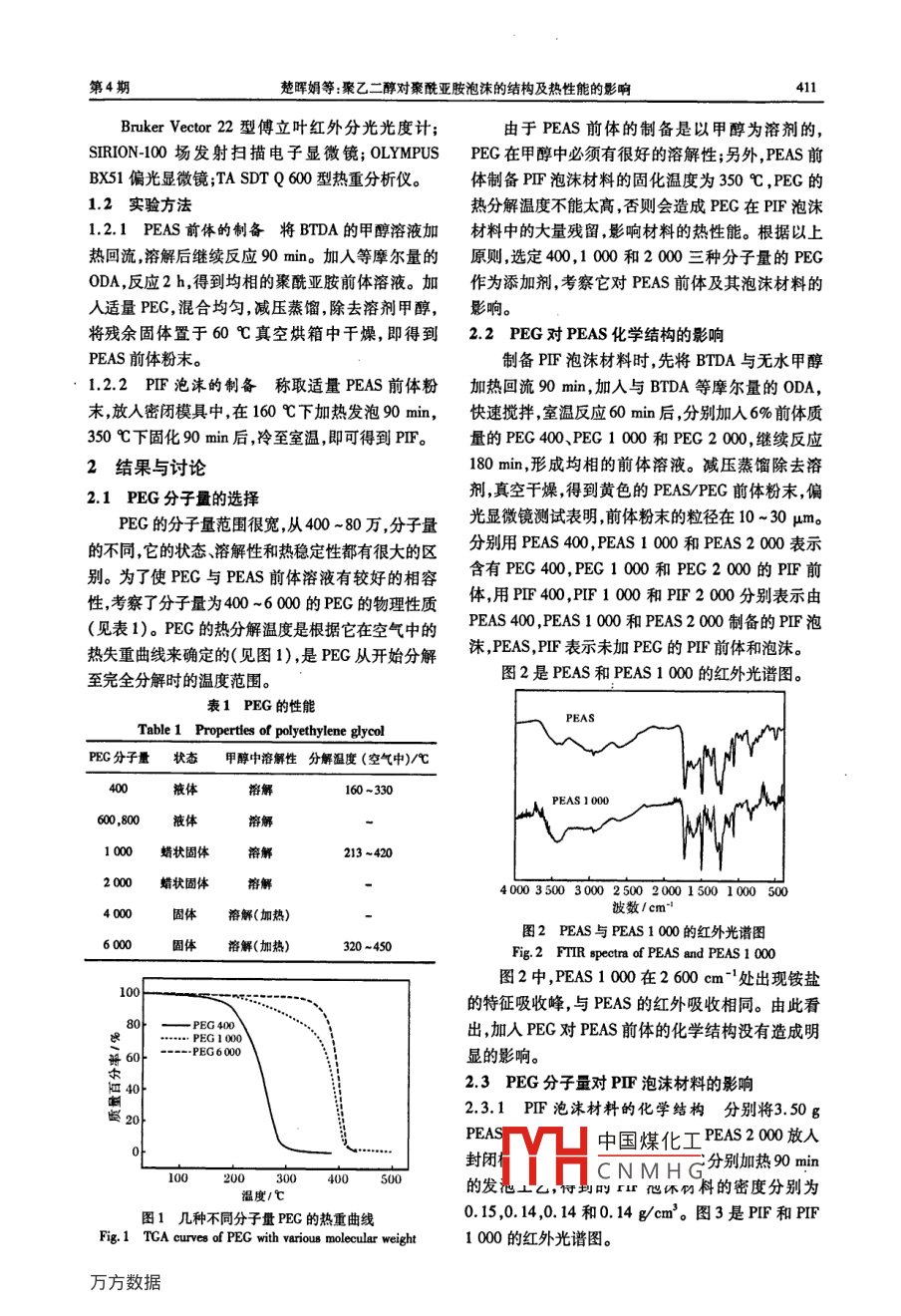 聚乙二醇对聚酰亚胺泡沫的结构及热性能的影响