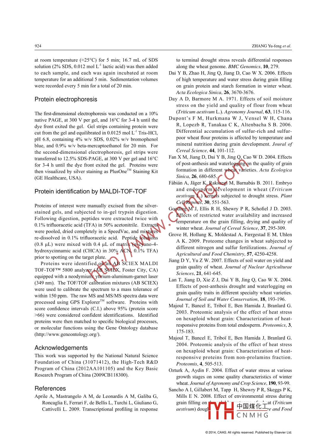 Proteomic Analysis of Wheat Seed in Response to Drought Stress
