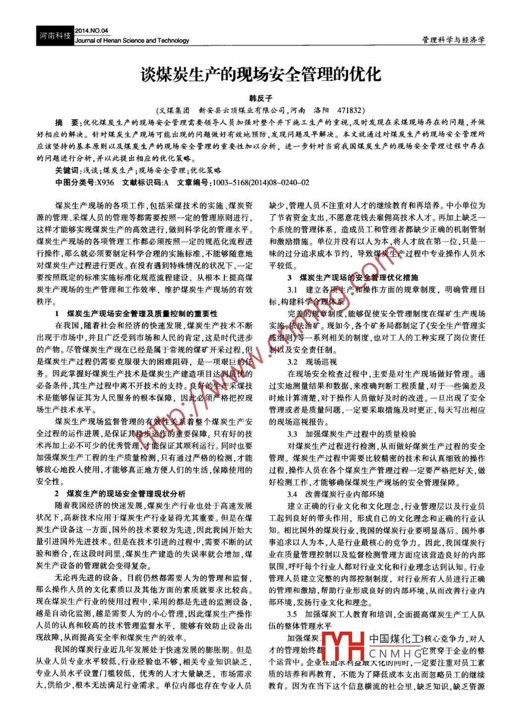 - 作者单位:义煤集团 新安县云顶煤业有限公司