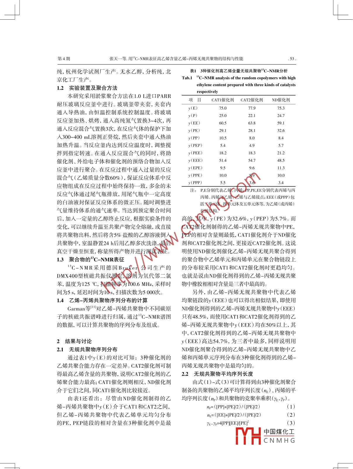 用13C-NMR表征高乙烯含量乙烯-丙烯无规共聚物的结构与性能