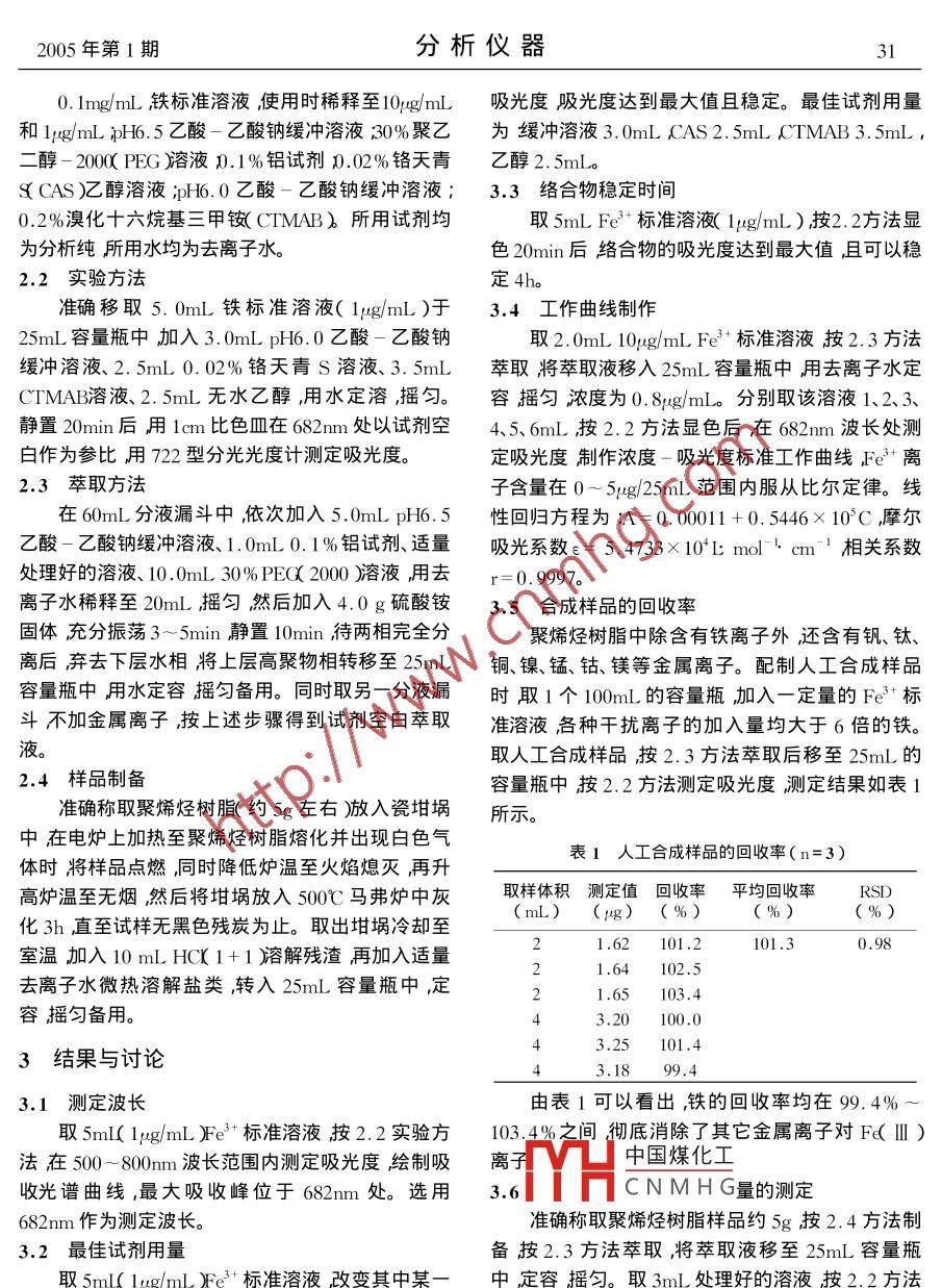 聚乙二醇萃取-铬天青S显色分光光度法测定聚烯烃树脂中的铁