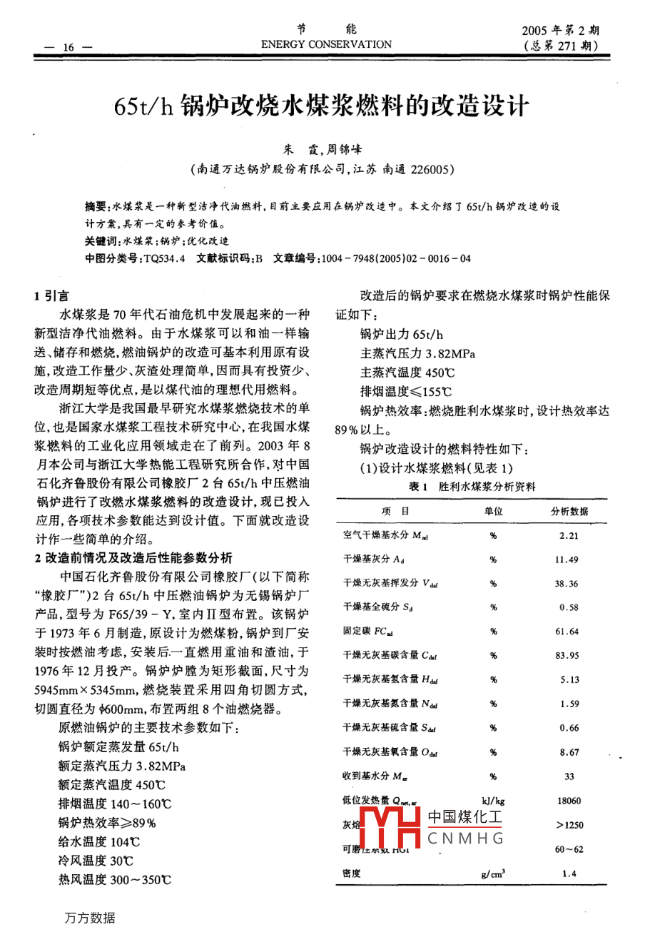 65t/h锅炉改烧水煤浆燃料的改造设计