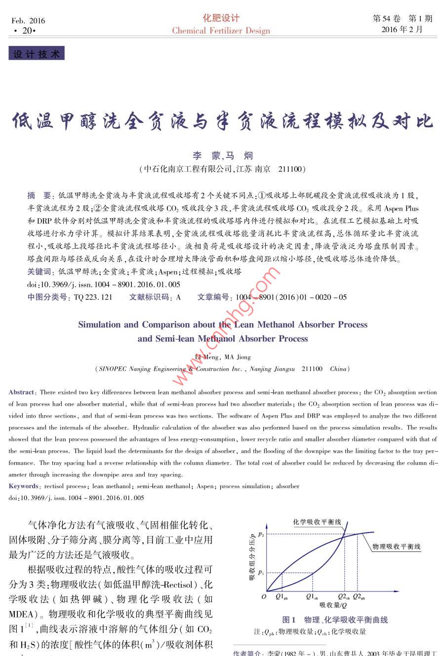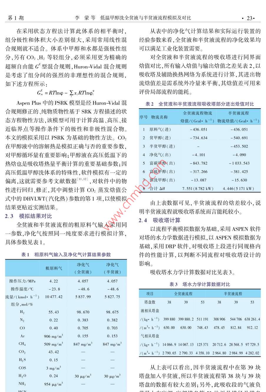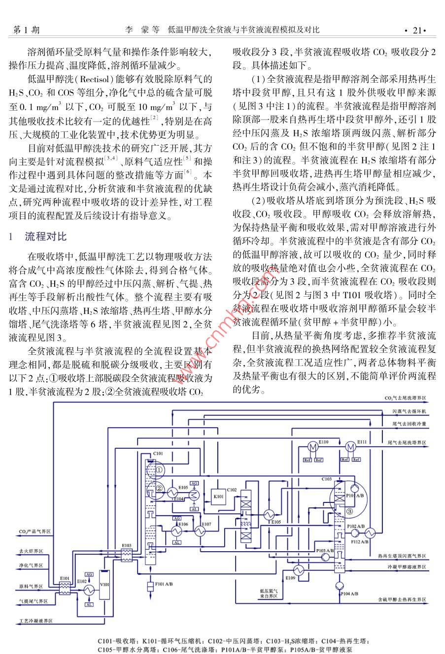 低温甲醇洗全贫液与半贫液流程模拟及对比