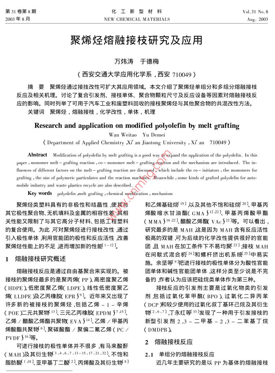聚烯烃熔融接枝研究及应用