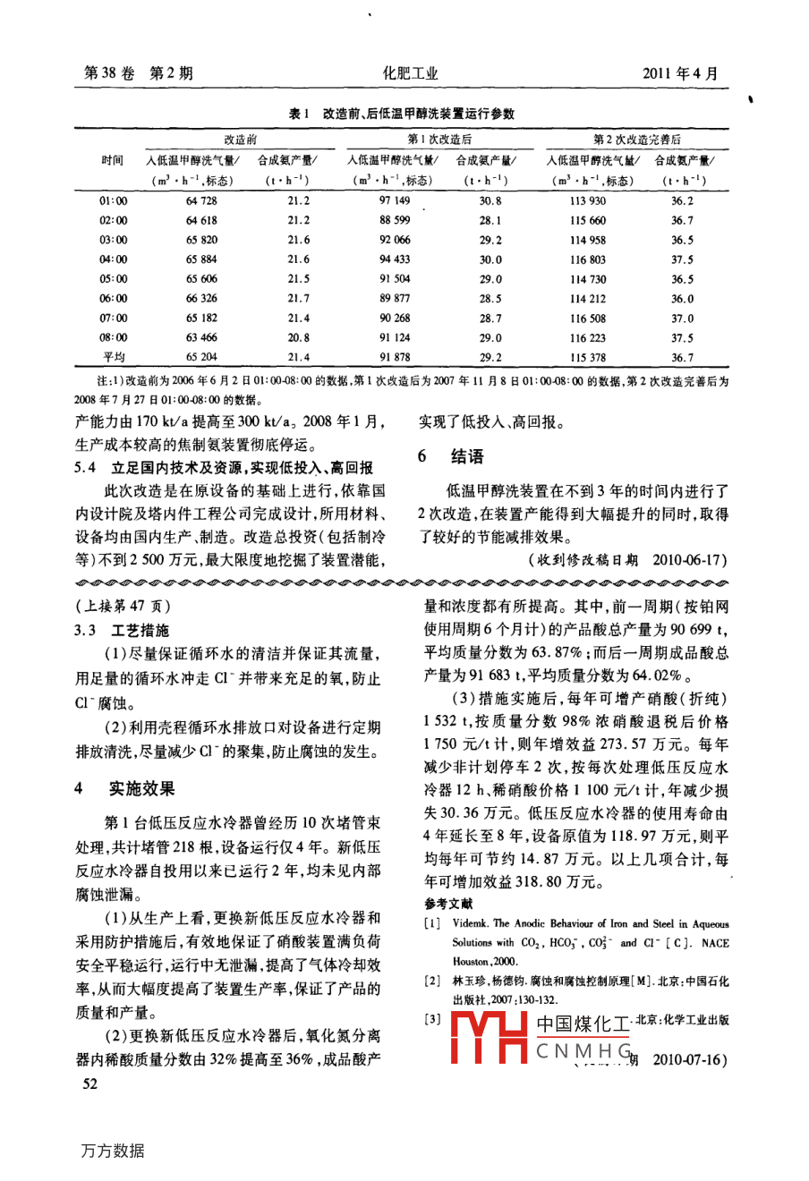低温甲醇洗装置扩产改造总结