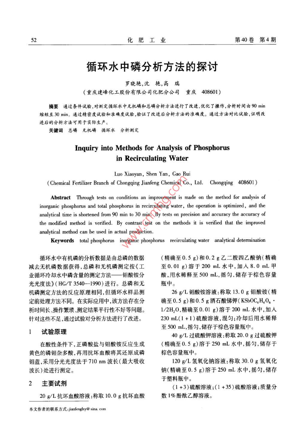 - 作者单位:重庆建峰化工股份有限公司化肥分公司
