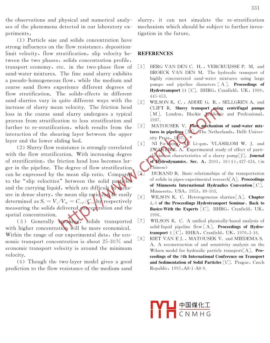 TWO-PHASE FLOW OF HIGHLY CONCENTRATED SLURRY IN A PIPELINE