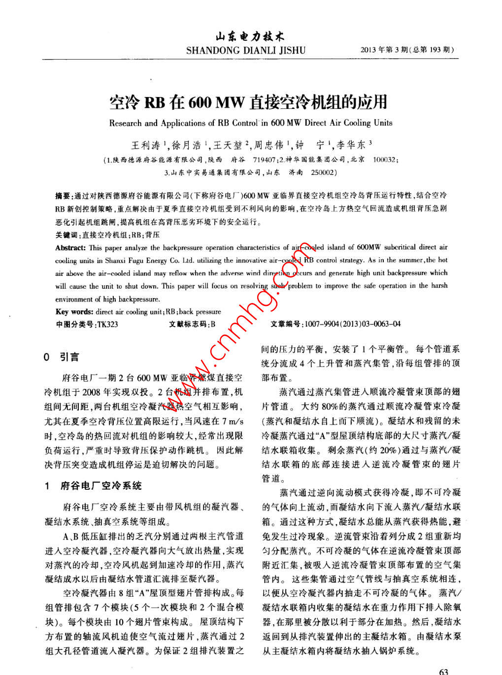 - 期刊名字:山东电力技术