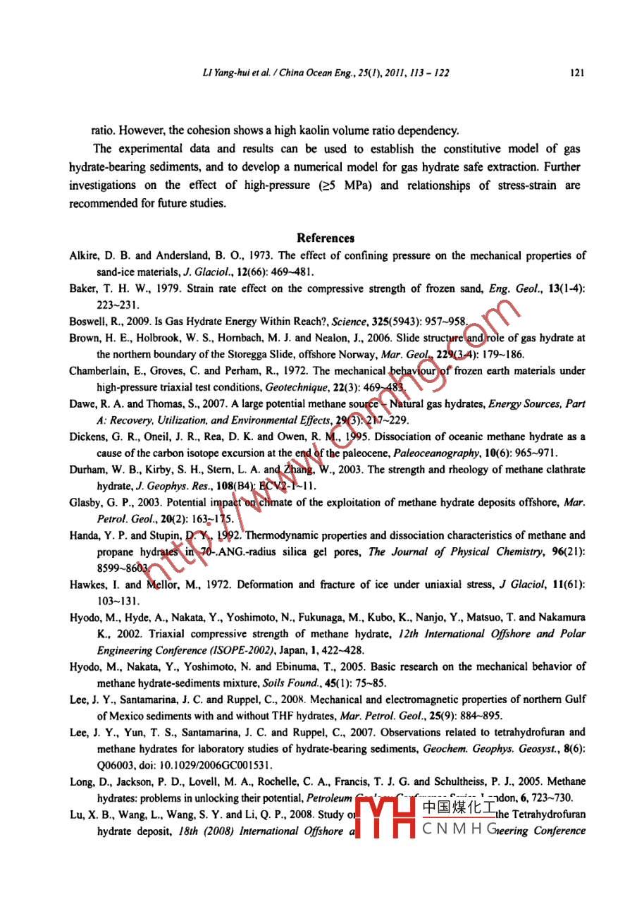 - 期刊名字:中国海洋工程(英文版)