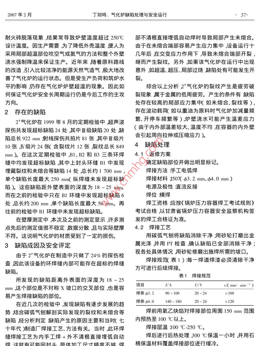 气化炉缺陷处理与安全运行