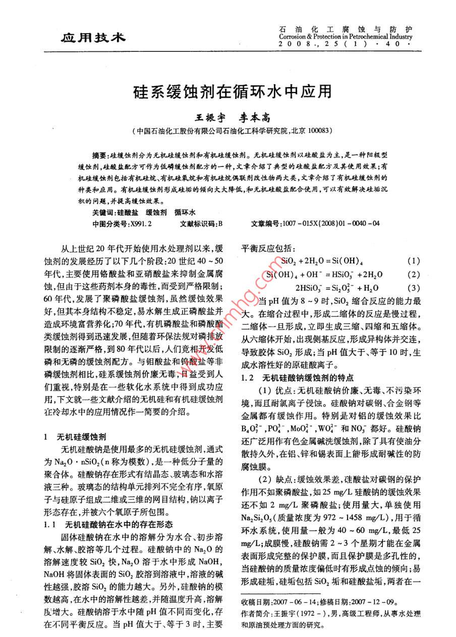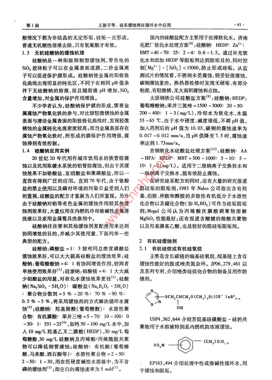 硅系缓蚀剂在循环水中应用