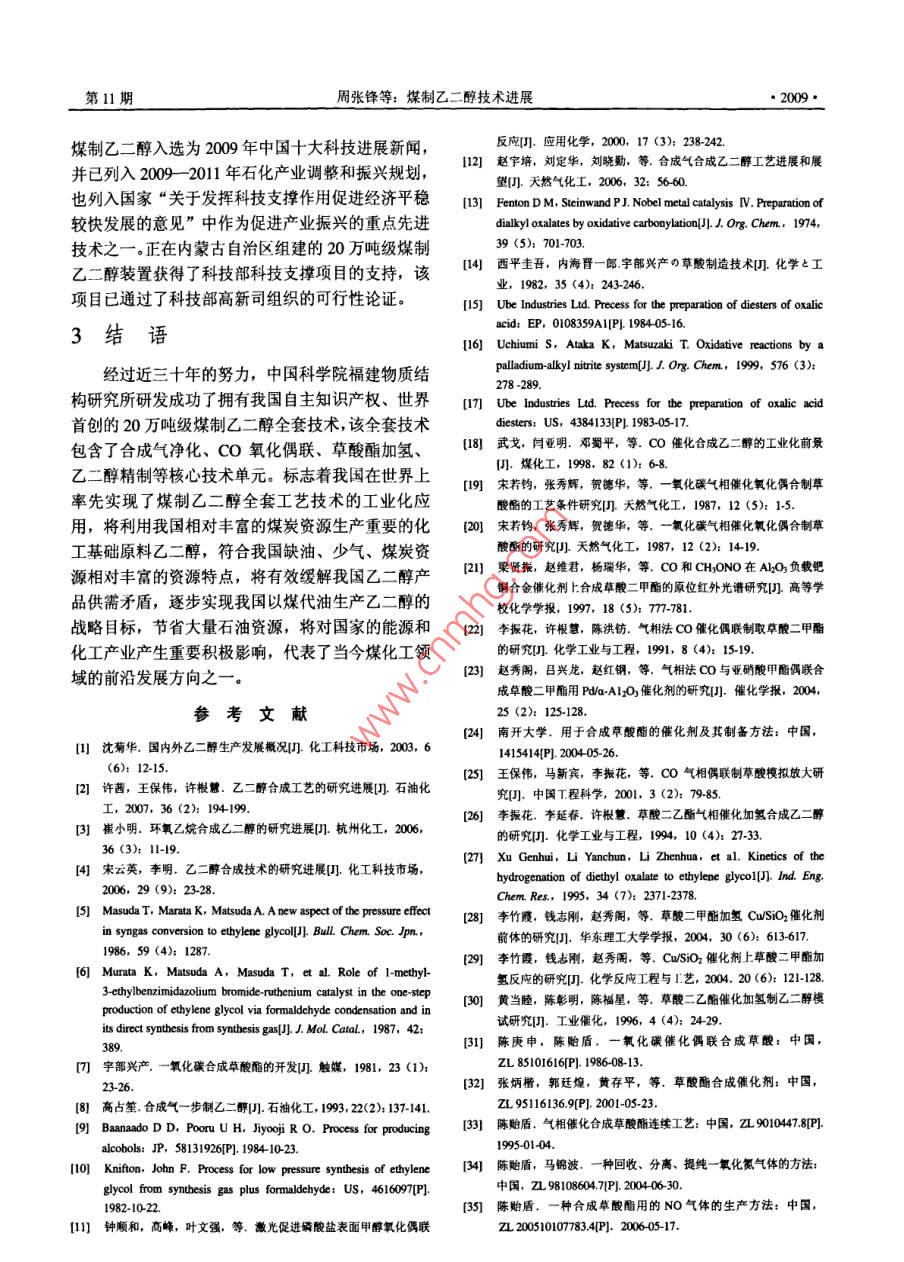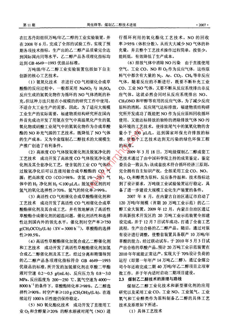 煤制乙二醇技术进展