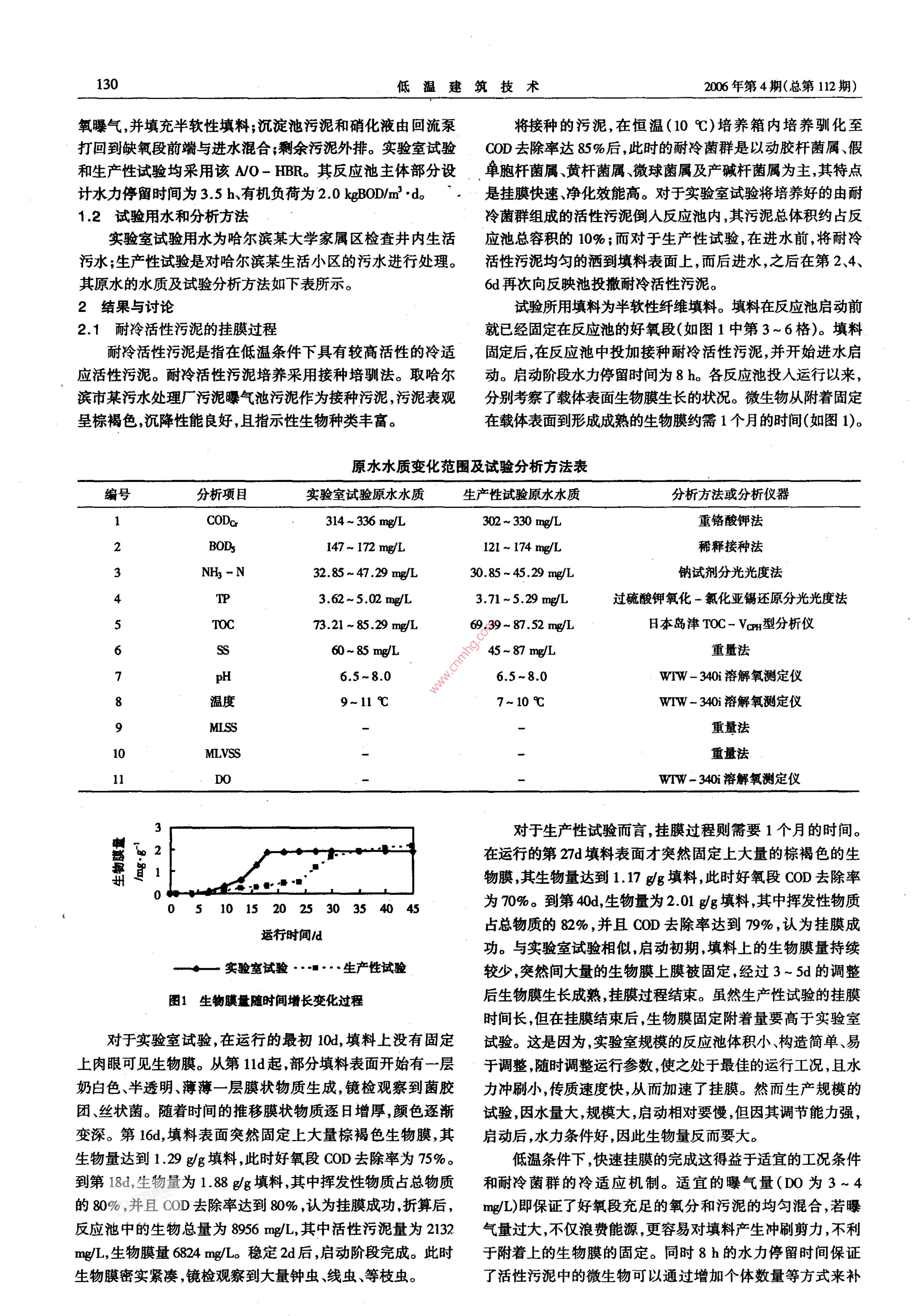 复合式生物池处理低温污水试验研究