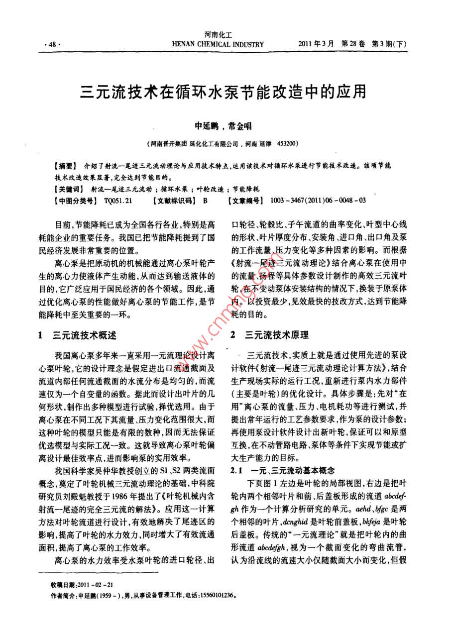 三元流技术在循环水泵节能改造中的应用
