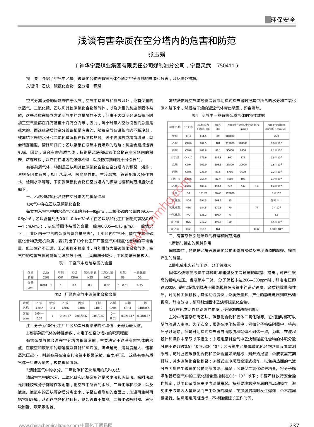 浅谈有害杂质在空分塔内的危害和防范