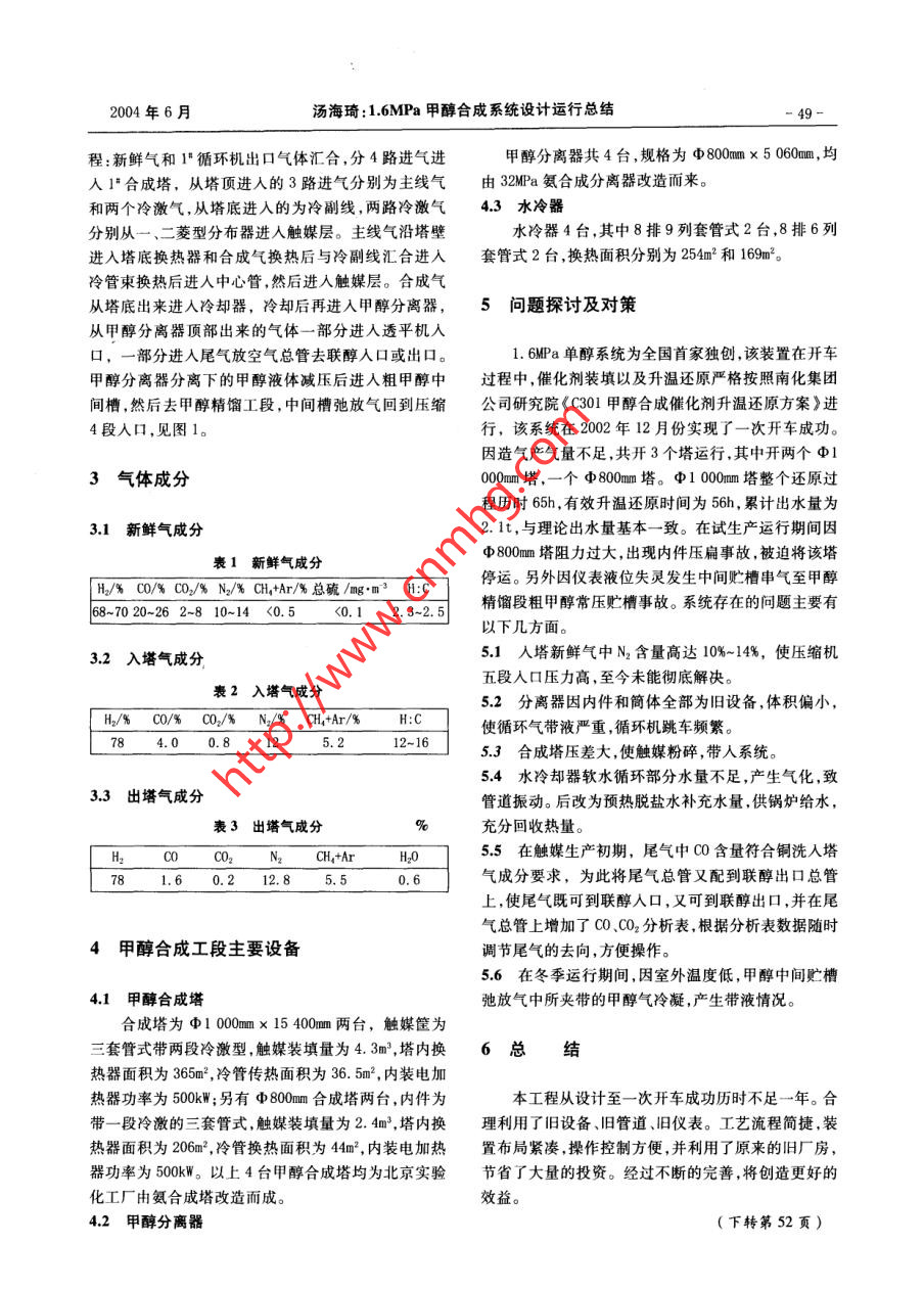 1.6MPa甲醇合成系统设计运行总结