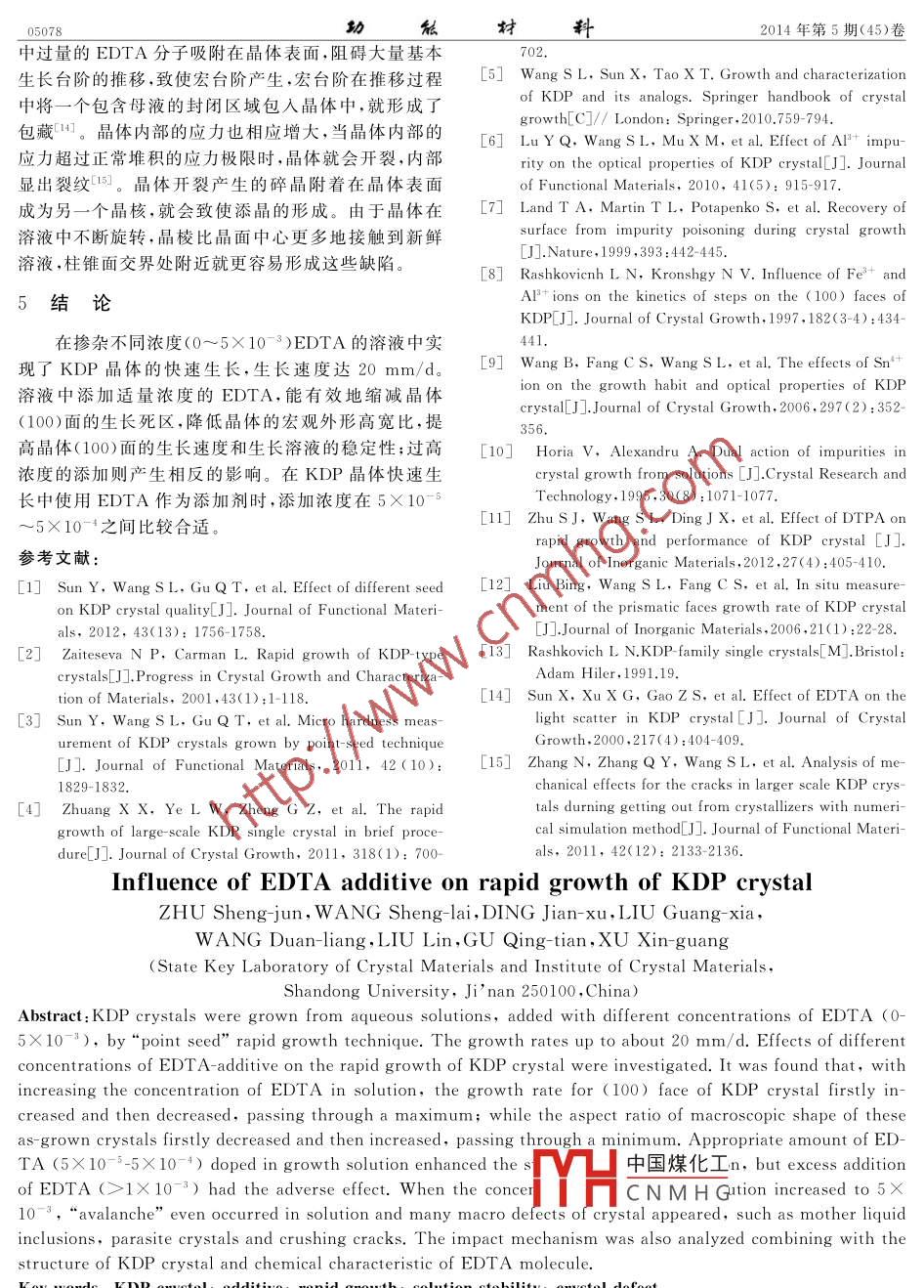 - 作者单位:山东大学 晶体材料国家重点实验室