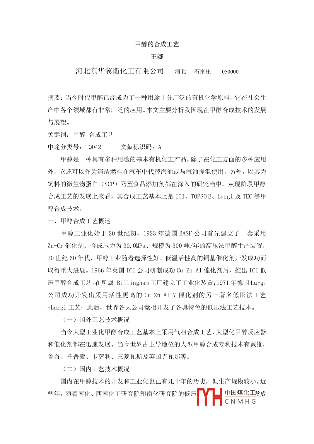 Lurgi和ICI低压甲醇合成工艺比较 2020-06-12