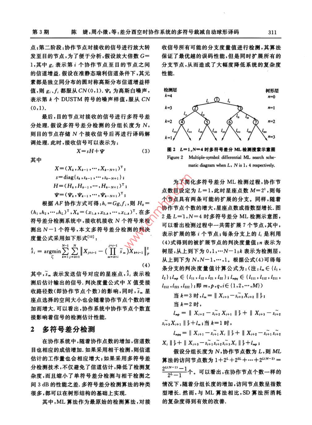 差分酉空时协作系统的多符号裁减自动球形译码