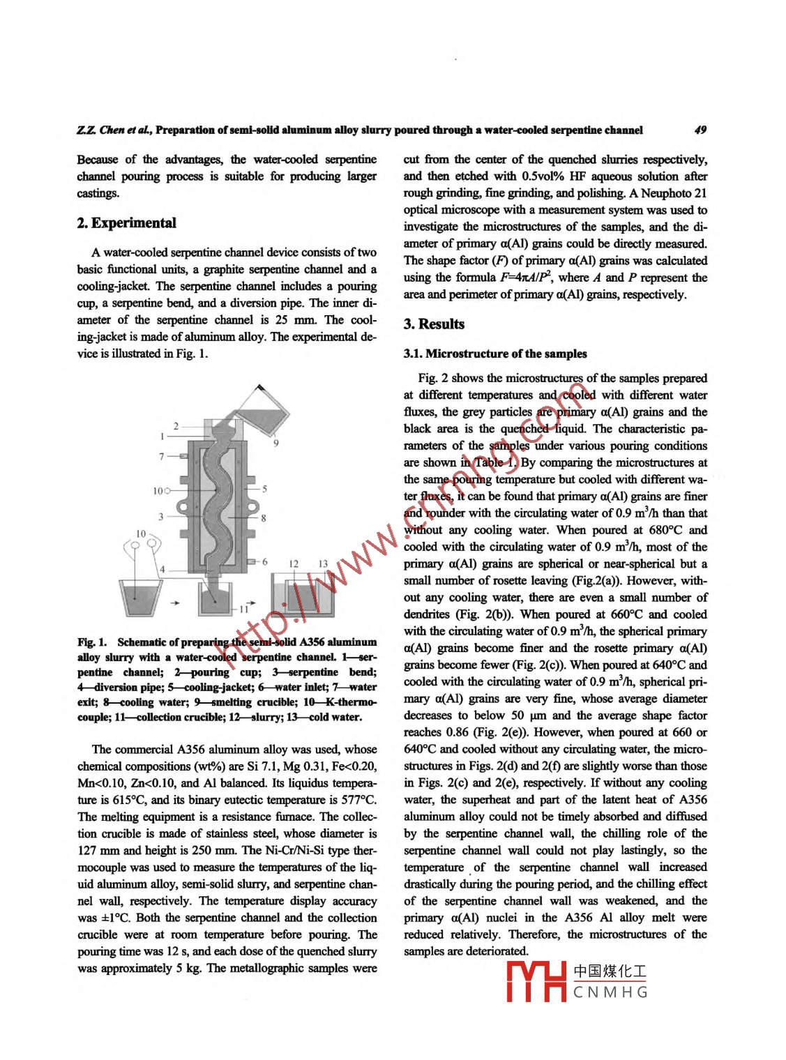 Preparation of semi-solid aluminum alloy slurry poured through a water-cooled serpentine channel