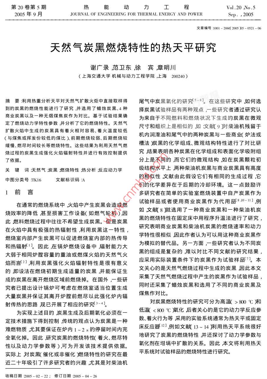 - 期刊名字:热能动力工程
