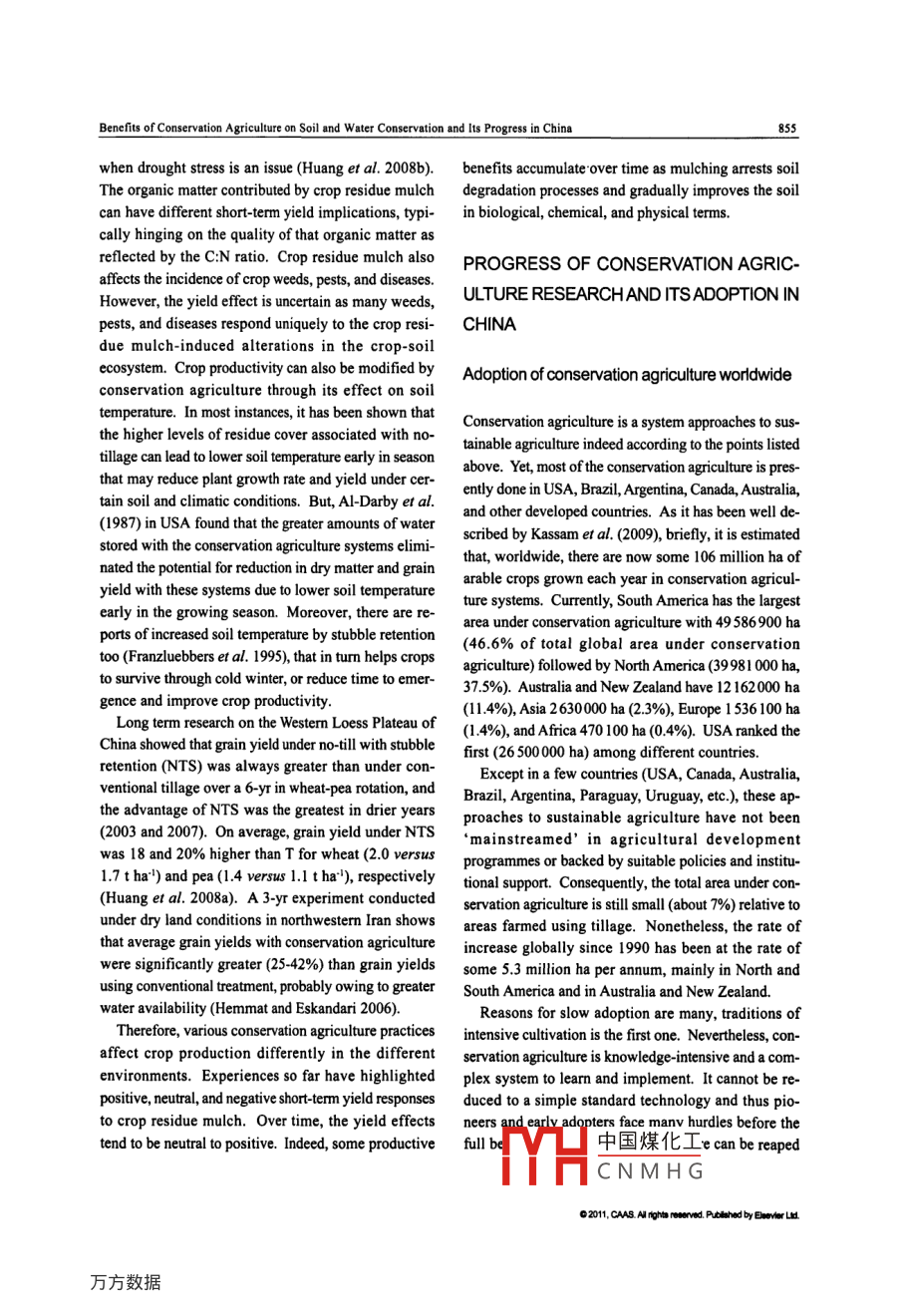 Benefits of Conservation Agriculture on Soil and Water Conservation and Its Progress in China